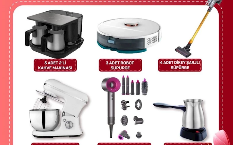 Başkanımız Mehmet Tahmazoğlu, sosyal medya hesabından yaptığı açıklamada Anneler Günü’nde annelere özel 5 adet 2’li kahve Makinası, 3 adet Robot Süpürge, 4 adet Dikey Şarjlı Süpürge, 3 adet Hamur Yoğurma Makinası, 10 adet elektrikli cezve, 3 adet saç kurutma ve şekillendirme seti hediye edeceğinin müjdesini verdi. Düzenlenecek etkinlikte yapılan yorumlar arasından kurayla belirlenecek olan simler hediyeleri almaya hak kazanacak.