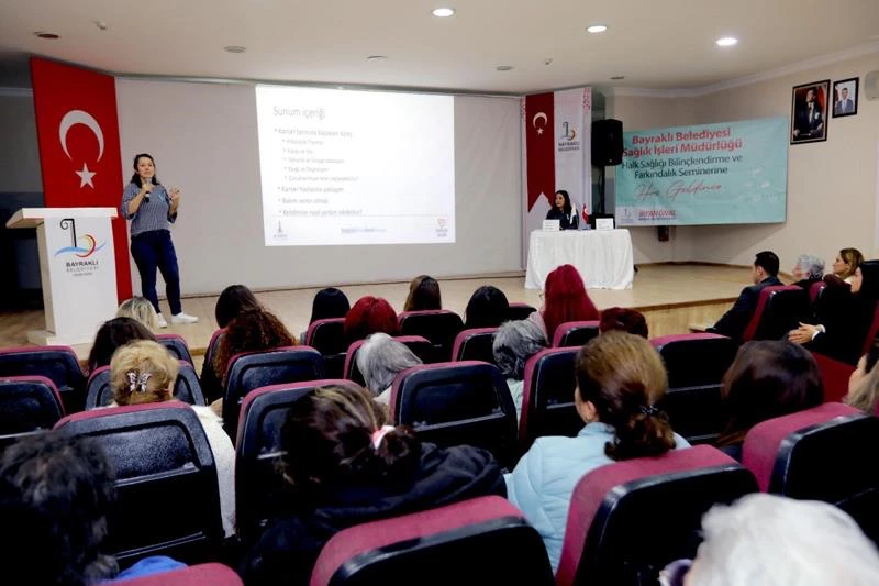 Bayraklı Belediyesi, Rahim Ağzı (Serviks) Kanseri Farkındalık Ayı kapsamında İzmir Büyükşehir Belediyesi Sağlık İşleri Daire Başkanlığı iş birliğiyle seminer düzenledi. Etkinlikte, erken teşhis, tedavi süreçleri ve koruyucu önlemler konularında uzmanlar tarafından katılımcılara detaylı bilgiler verildi. Bayraklı Belediye Başkanı İrfan Önal, "Kanserle mücadelede erken teşhis çok önemli ve bizler bu farkındalığı oluşturarak billinçli bir şekilde mücadele etmek için bu tür etkinliklerimizi sürdüreceğiz" dedi.