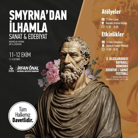 Bayraklı Belediyesinin bu yıl üçüncüsünü düzenlediği Uluslararası Bayraklı Homeros Edebiyat ve Sanat Festivali, sanat ve edebiyat dünyasının önemli isimlerini bu yıl da bir araya getirecek. ‘Smyrna’dan İlhamla Sanat ve Edebiyat’ temasıyla 11-12 Ekim tarihlerinde gerçekleşecek festival, katılımcılara unutulmaz anlar yaşatacak. Yerli-yabancı yazar ve sanatçıların yer alacağı festival boyunca atölyeler, söyleşiler, sergiler, gösteriler, müzikal ve konserler sanatseverlerle buluşacak. Bayraklı Belediye Başkanı İrfan Önal, “Antik Çağ’da yaşamış ve batı edebiyatının en önemli ozanlarından Homeros’u doğduğu topraklarda yaşatmak ve gelecek nesillere aktarmak istiyoruz. Bu kapsamda 3’üncüsünü düzenleyeceğimiz festivalimizde tüm edebiyat ve sanatseverleri Homeros’un dünyasında yolculuğa davet ediyoruz” dedi.Bayraklı Belediyesi Kültür ve Sosyal İşler Müdürlüğü tarafından gerçekleştirilecek 3’üncü Uluslararası Bayraklı Homeros Edebiyat ve Sanat Festivali, tarih, edebiyat ve sanatla dolu etkinlikleriyle İzmirlileri büyüleyici bir yolculuğa çıkaracak. Festival, 11 Ekim Cuma günü 17.00'da Smyrna kazı alanında çeşitli atölyelerle başlayacak. Antik Heykel Atölyesi, yetişkinlere tarihin izlerini taşıyan heykelleri yeniden keşfetme fırsatı sunacak. 18.30'da yapılacak Maske Atölyesi etkinliği ile katılımcılar sanatsal becerilerini ortaya çıkaracak.