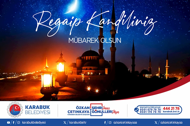 Bu vesileyle, aziz hemşehrilerimizin ve tüm İslam âleminin Regaib Kandili’ni tebrik ediyor; bu kutlu gecenin rahmet, mağfiret ve hayırlara vesile olmasını Yüce Allah’tan niyaz ediyorum. Dualarınızın kabul, gönüllerinizin huzurla dolmasını dilerim."