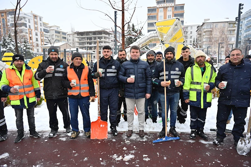 Aksaray Belediyesi ekiplerinin kar temizleme çalışmalarını sahada bizzat takip eden Belediye Başkanı Dr. Evren Dinçer, çorba ikramı ile vatandaşların içini ısıttı.
