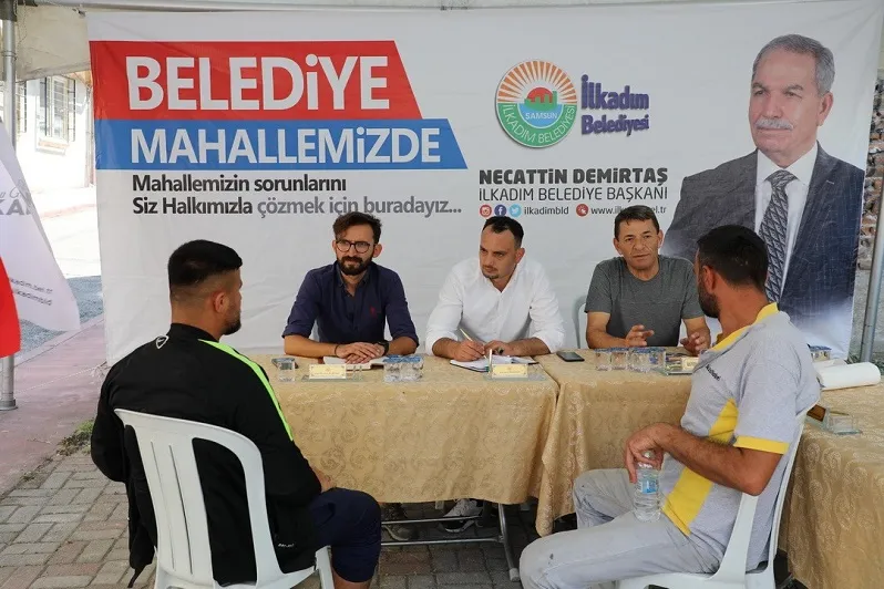 İlkadım Belediye Başkanı Necattin Demirtaş tarafından gerçekleştirilen Belediye Mahallemizde hizmet çadırı İlkadım’da hizmete hız katıyor.“Yerinde hizmet, yerinde çözüm” anlayışıyla ilçe genelinde belirlenen program dahilinde kurulan hizmet çadırı mahalle sorunlarına çözüm oluyor. Belediye Mahallemizde iletişim çadırına gelen vatandaşlara tansiyon, şeker ölçümleri gibi öncelikli sağlık hizmeti sunuluyor. Her biriminden yetkililer bulunduğu hizmet çadırı, Fevzi Çakmak, İlyasköy, Kışla, Fatih mahallerinde sonra Rasathane Mahallesi’ne mahalle sakinlerinin belediyeden talep ettikleri hizmetleri yerine getiriyor.