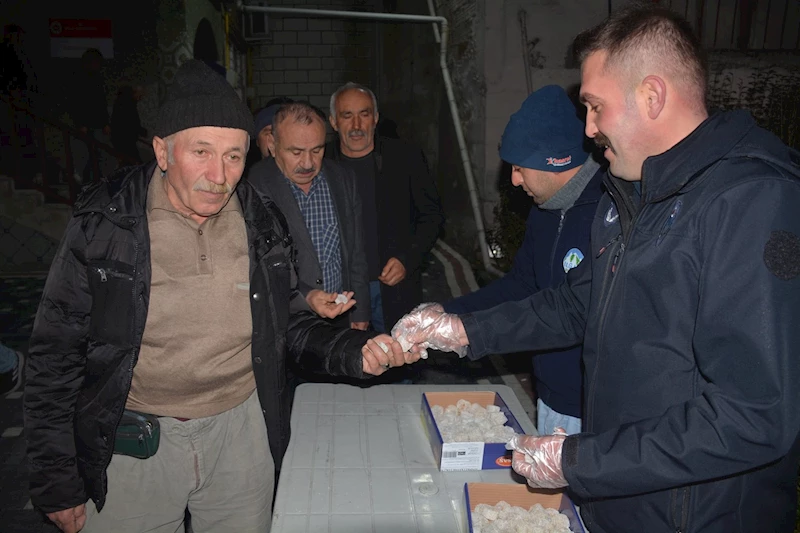 Bu gece idrak etmekte olduğumuz Berat Kandili vesilesiyle ilçemizde bulunan camilerde, yatsı namazı çıkışı vatandaşlarımıza lokum ikram ettik.
