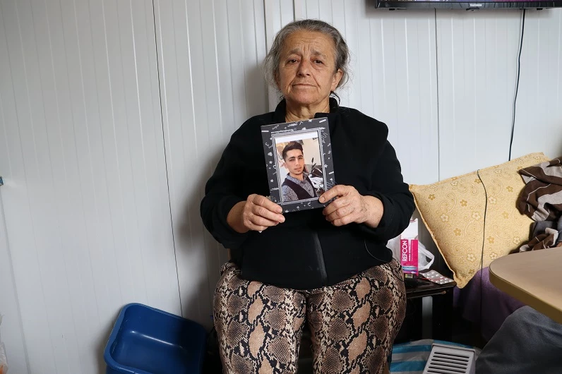 Depreme oğluyla ayrı evlerde yakalanan Gülten Taş, eşi ve annesiyle yaşadığı 7 metrekarelik bir konteynırda bir yandan annesine bakarken, bir yandan hala oğlunu bulma mücadelesi veriyor. Yıkılan evlerine gittiklerinde eşyaların sağlam olduğunu, dairenin çökmediğini ancak buna rağmen oğlunun bulunamadığını söyleyen Gülten Taş, “Bu dünyada tek umudum oğlumu bulmak, ölüm Allah’ın emridir evet ama benim oğlumun mezarına gitme şansım bile yok” diyor.