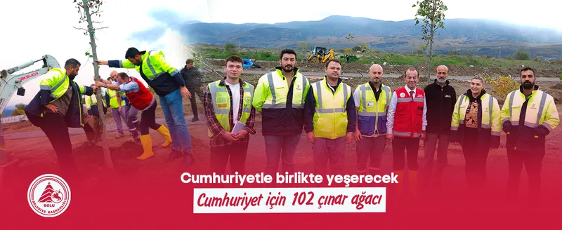 Bolu Belediyesi, Cumhuriyet'in 102'nci yılı anısına anlamlı bir projeye imza attı. 100. Yıl Cumhuriyet Parkı bünyesinde oluşturulan Cumhuriyet Çınar Ormanı'na 102 adet çınar ağacı dikilecek. Cumhuriyet'le birlikte büyüyecek bu ormanda, her yıl Cumhuriyet'in yaşı kadar yeni bir çınar daha toprakla buluşacak.