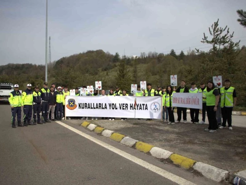 Bolu’da lise öğrencileri, jandarma trafik ekipleriyle birlikte seyir halindeki araçları durdurarak yolcu ve şoförlere uyarıda bulundu.