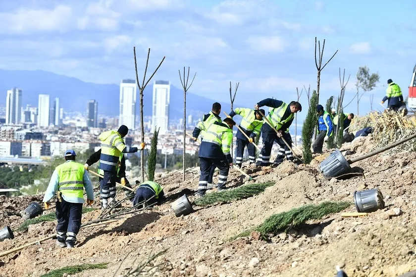 Alanda dikim çalışmalarının devam ettiğini belirten İzmir Büyükşehir Belediyesi Park ve Bahçeler Dairesi Başkanlığı Ağaçlandırma Şefi Fuat Karaca, “İzmir Büyükşehir Belediye Başkanımız Dr. Cemil Tugay’ın kent genelinde başlattığı ağaçlandırma seferberliği kapsamında bu alanı ele aldık. Öncelikle eğimi düşürecek, su tasarrufu sağlayacak arazi hazırlıklarını yaptık. Bunun için terasları ve dikim çukurlarını belirledik. Binin üzerinde ibreli ve yapraklı olmak üzere karışık ağaç dikimi yapacağız. Yapraklı türlerden yalancı akasya, tespih, sofora, akça ağaç, ibreli türlerden de toprak yapısına uygun olan kalem serviyi kullanacağız. Alanı aynı zamanda çeşitli bitki türleri ile yeşillendireceğiz. Kente yeni akciğerler kazandırırken buradaki boş alanda kaçak moloz dökümünün önüne geçiyoruz. Halkımızın da bu yönde talepleri vardı, onlar da çalışmalardan çok memnun” dedi.