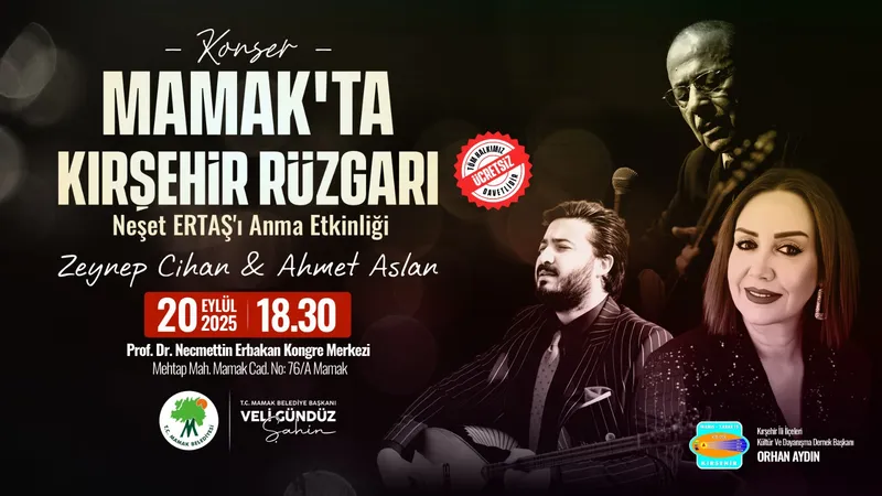Mamak Belediyesi, Türk Halk Müziği’nin unutulmaz ismi Neşet Ertaş’ı anma programına ev sahipliği yapıyor. “Bozkırın Tezenesi”nin sevilen eserleri Necmettin Erbakan Kongre Merkezi’nde Mamaklılarla buluşacak.