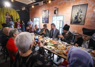 Buca Belediye Başkanı Görkem Duman, Buca Sosyal Yaşam Kampüsü’nde ikinci baharlarını yaşayan dört çift ile kahvaltıda bir araya geldi. İzmirli sanatçı Mikrop lakaplı Hikmet Durmuş’un da gönüllü olarak katıldığı buluşmada bol bol sohbet edildi; güzel anılar paylaşıldı. Buca Belediye Başkanı Görkem Duman, “Çınarlarımız için hoş anılar yaşayacakları güzel bir gün planladık. Büyüklerimiz başımızın tacı. Sevgi ve birikimleri ile bize güç veriyorlar” diye konuştu.