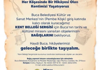 Buca Belediyesi, her köşesinde ayrı bir hikâyesi olan ilçenin belleğini gün yüzüne çıkarmaya hazırlanıyor. Kuracakları Kent Belleği Sergisi için Bucalılara çağrıda bulunan Belediye Başkanı Mimar Görkem Duman, “Anı değeri yüksek, Buca’mızın tarihine dokunacak objelerinizin bağışlarını bekliyoruz” dedi.
