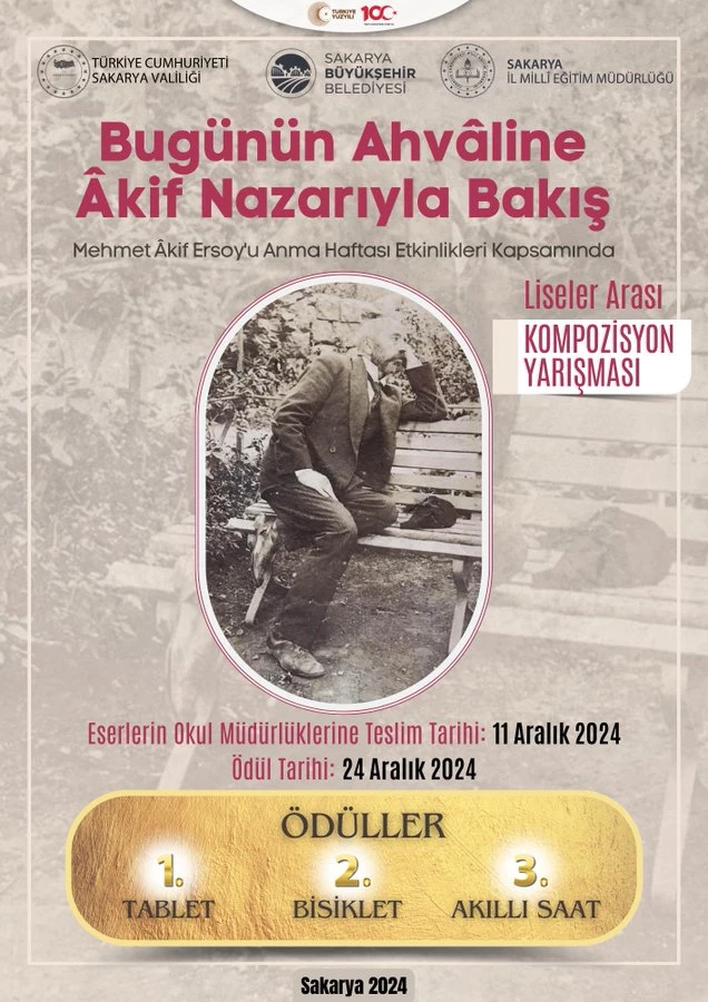 Sakarya Büyükşehir Belediyesi ve İl Milli Eğitim Müdürlüğü ortaklığında gerçekleştirilen “Bugünün Ahvâline Âkif Nazarıyla Bakış” adlı kompozisyon yarışmasında dereceye girenler belli oldu.