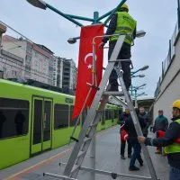 Bursa Büyükşehir Belediye Başkanı Mustafa Bozbey’in talimatıyla belediye binaları, BursaRay istasyonları, belediye otobüsleri ve otoparklar dahil olmak üzere kuruma ait tüm alanlar ay yıldızlı bayraklarla donatıldı.