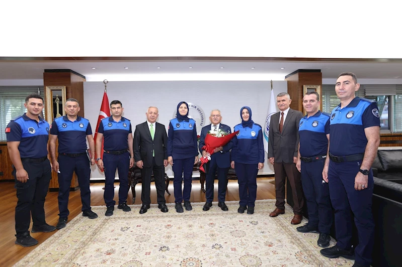 Vatandaşların huzur ve güvenliği için turizmden trafiğe, ticarethanelerden sokaklara kadar sorumluluk alanındaki tüm alanlarda 7/24 esasına göre çalışmalarını sürdüren Büyükşehir Belediyesi Zabıta Daire Başkanlığı personeli, Zabıta Teşkilatı kuruluşunun 199. yıl dönümü münasebetiyle Büyükşehir Belediye Başkanı Dr. Memduh Büyükkılıç’ı ziyaret etti.