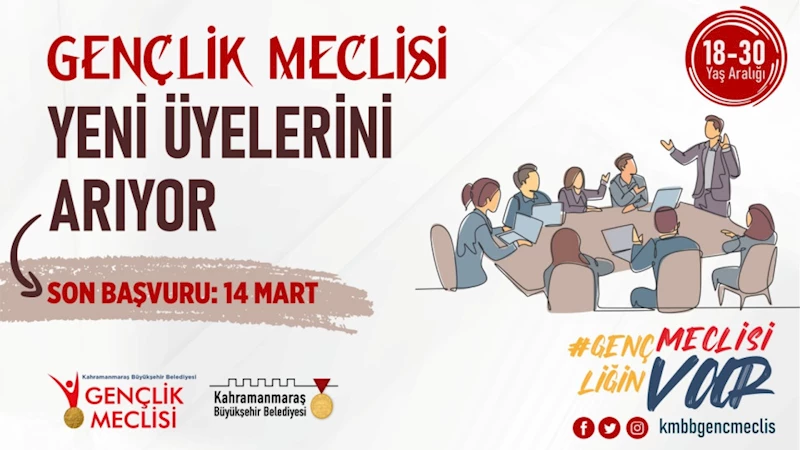 Kahramanmaraş Büyükşehir Belediyesi bünyesinde faaliyet gösteren Gençlik Meclisi, yeni dönemi için çalışmalarına hız veriyor. Kahramanmaraşlı gençlerin kişisel, sosyal, eğitim, bilim, teknoloji, kültür, sanat, çevre ve şehircilik, spor gibi birçok alanda gelişimini desteklemek amacıyla faaliyet gösterecek meclis, yeni üyeleriyle gücüne güç katmaya hazırlanıyor. Gençlere yönelik önemli projeler üreten ve onların toplumsal hayata aktif katılımını sağlayan Gençlik Meclisi, yeni üyelerini arıyor. 18 – 30 yaş aralığındaki gençlerin katılım sağlayabileceği meclise https://kahramanmaras.bel.tr/duyuru/2025/02/27/genclik-meclisi-on-basvuru-formu internet adresinden çevrimiçi ön başvuru yapılabiliyor. 14 Mart Cuma gününe kadar devam edecek ön başvuruların ardından yapılacak değerlendirme süreciyle yeni üyeler belirlenecek.
