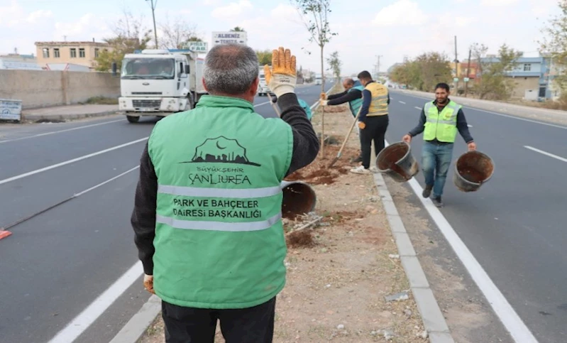 Şanlıurfa Büyükşehir Belediyesi bünyesindeki fidanlıklarda yetiştirilip boylandıktan sonra kentin yeşil dokusunu korumak ve geliştirmek amacıyla yürütülen çalışmalarda toprakla buluşturulan fidanlar dikimi yapılan alanların çehresini güzelleştiriyor.