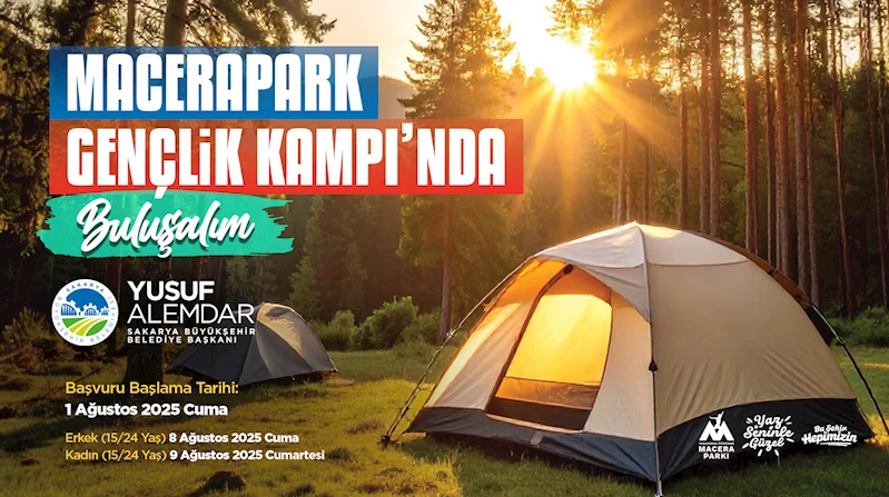 Macerapark’ta düzenlenecek ücretsiz “Gençlik Kampı” programıyla, 15-24 yaş arası gençler doğayla iç içe, eğlence dolu bir deneyim yaşayacak. Programda, voleybol, halat çekme, dart, langırt turnuvaları, doğa yürüyüşü ve dinletiler yer alacak.