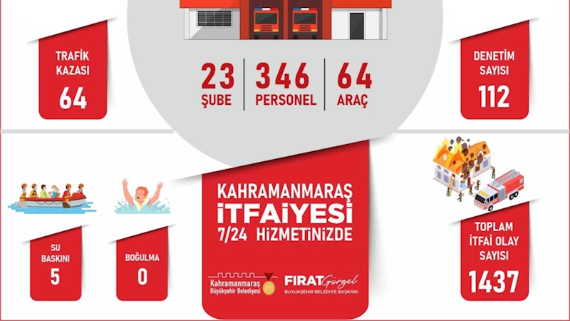 994 yangın vakasına müdahale eden ekipler, 64 trafik kazasında da can kurtaran görev üstlendi. Ayrıca, yaşanan 5 su baskını olayında vatandaşların mağduriyetini önlemek amacıyla hızlı ve koordineli müdahalelerde bulunuldu. İtfaiye Dairesi Başkanlığı ekipleri, bunların yanı sıra bin 437 genel itfai olaya da anında müdahale ederek kamu güvenliğini sağladı. Sadece olaylara müdahale etmekle kalmayan itfaiye ekipleri, 112 denetim faaliyeti ile iş yerlerinin yangın güvenliği kontrollerini gerçekleştirdi, 959 kişiye ise yangın öncesi alınması gereken tedbirler ve doğru müdahale yöntemleri hakkında eğitim verdi.