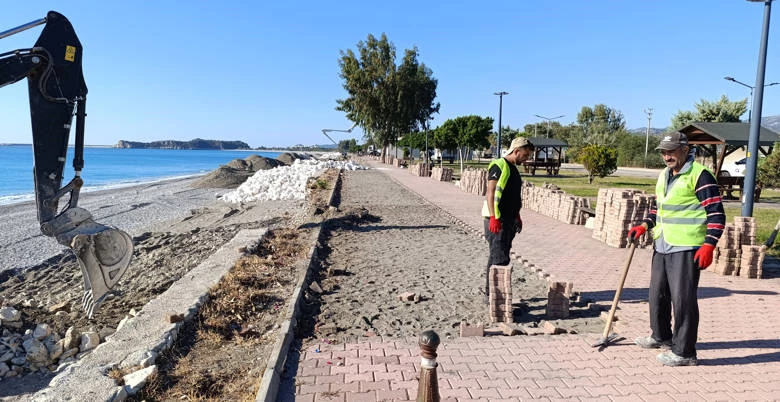 Yerinde yapılan incelemeler doğrultusunda deforme olmuş ve yıkılmış olan sahil kısmı ile rekreasyon alanını sınırlayan yaklaşık 400 metrelik alanda taş istinat duvarı yapılıyor. Duvar yüksekliği sahil kotundan yaklaşık 2.20 metre yüksekliğinde olacak. Bununla beraber sahil üst kotunda rekreasyon alanında bulunan yürüyüş yolunun kilit parke taşları ve bordürlerinin belirli alanlarında yenileme çalışmaları ve çevre düzenlemesi de yapılacak.
