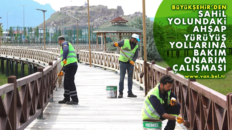 Van Büyükşehir Belediyesi Sahil Yolu’nda yapılan ve vatandaşların yoğun olarak kullandığı ahşap yürüyüş yollarına koruyucu vernik uygulaması yaptı.