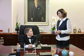 23 Nisan Ulusal Egemenlik ve Çocuk Bayramı ile TBMM'nin 105. açılış yılı kutlamaları çerçevesinde Eskişehir Büyükşehir Belediye Başkanı Ayşe Ünlüce, Meseret İnel İlkokulu 4. sınıf öğrencisi Ege Ersen’i makamında ağırladı.