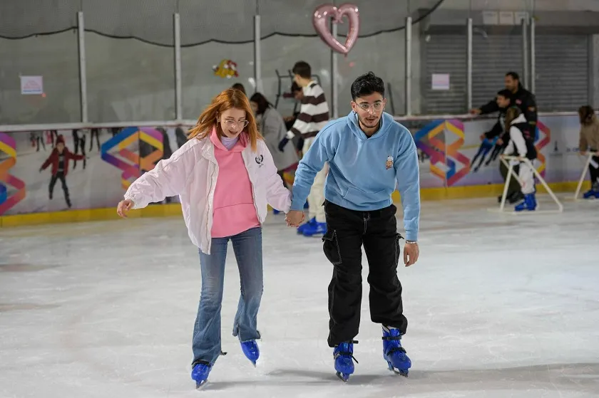 İzmirliler buz pistinde sevgililer gününü kutladı