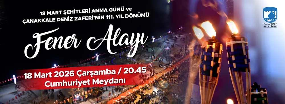 Çanakkale Deniz Zaferi'nin 111. yıl dönümü ve 18 Mart Şehitleri Anma Günü dolayısıyla bir anma etkinliği düzenlenecek. Çanakkale Belediyesi tarafından organize edilen Fener Alayı, 18 Mart 2026 Çarşamba günü saat 20.45'te Cumhuriyet Meydanı'ndan başlayacak.