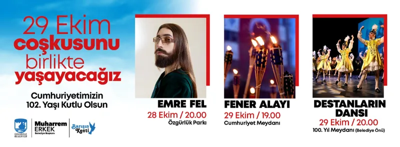 Cumhuriyet'in 102. kuruluş yıl dönümü, Çanakkale'de düzenlenecek etkinliklerle coşkuyla kutlanacak. Tüm vatandaşlar etkinliklere davet edildi.
