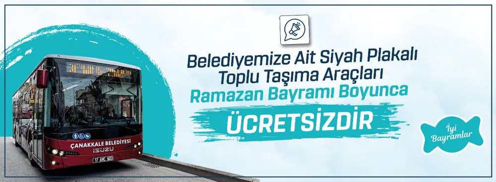 Çanakkale Belediyesi, bayram tatili boyunca kendi filosundaki otobüslerde ücretsiz ulaşım hizmeti vereceğini duyurdu.