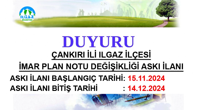Çankırı İli Ilgaz İlçesi İmar Plan Notu Değişikliği Askı İlanı