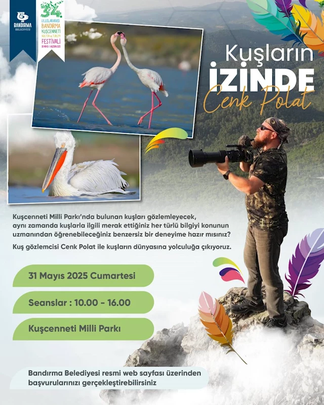 34.Uluslararası Kuşcenneti Kültür ve Turizm Festivali etkinlikleri kapsamında Kuşcenneti Milli Parkı’nda bulunan kuşları gözlemleyebileceğiniz, aynı zamanda kuşlarla ilgili merak ettiğiniz her türlü bilgiyi konunun uzmanında öğrenebileceğiniz benzersiz bir deneyime hazır mısınız?