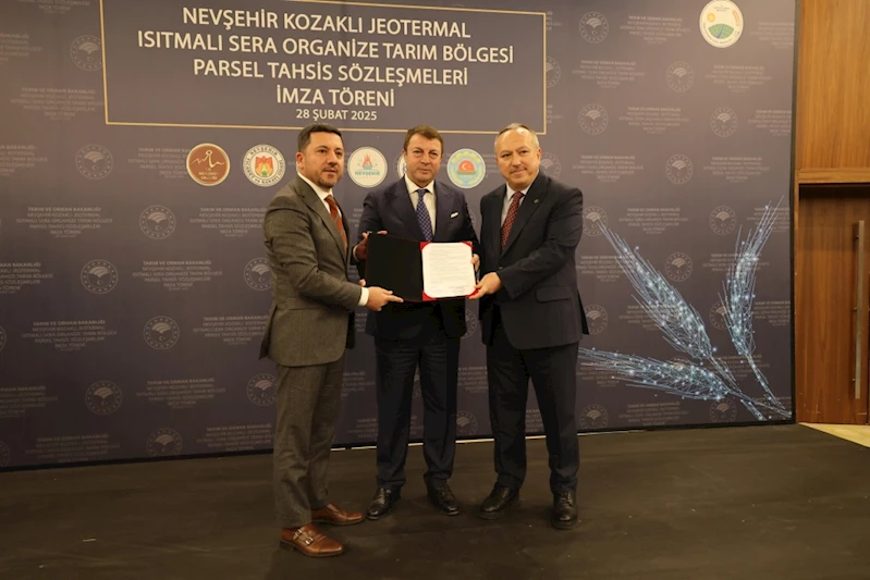 Nevşehir Kozaklı Jeotermal Isıtmalı Sera Organize Tarım Bölgesi (OTB) parsel tahsis sözleşmeleri imza töreni gerçekleştirildi.
