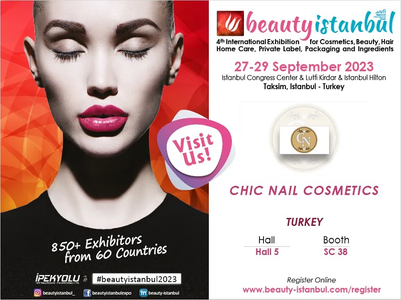 Heyecan verici bir kozmetik deneyimi için dünya çapında öne çıkan Fuar, BEAUTYISTANBUL 2023 için geri sayım başlıyor. Kozmetik dünyasının yıldız markalarını bir araya getiren fuar, 3 yılda dünyanın en büyük 5 kozmetik fuarı arasına girmesiyle sektörün nabzını tutmaya devam ediyor. Chic Nail Beauty and Cosmetic bu yıl ilk kez BEAUTYISTANBUL fuarında yerli ve yabancı müşterilerini karşılıyor.