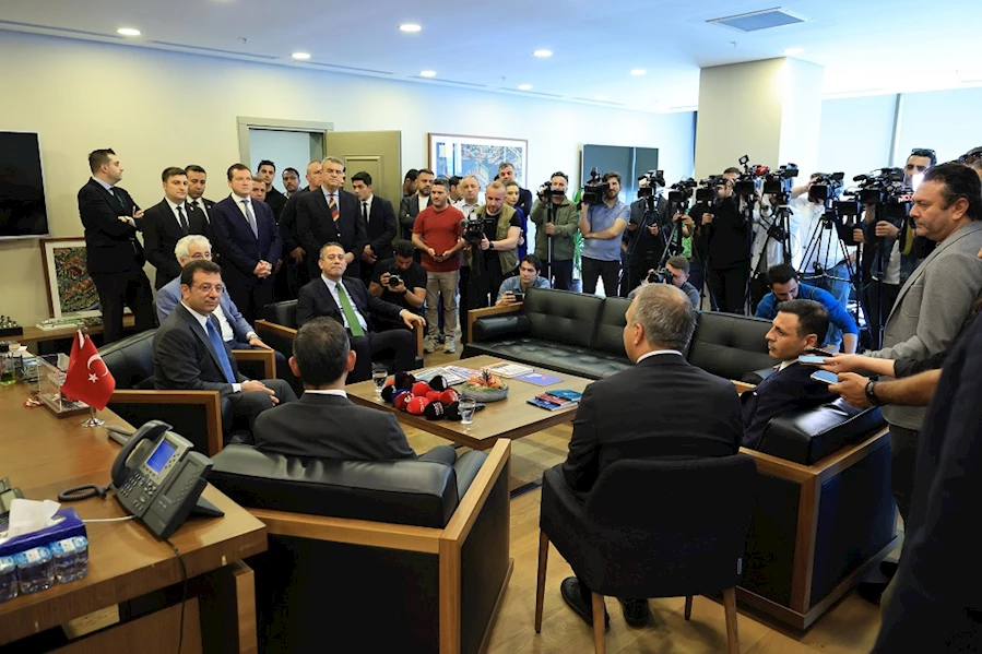 CHP Genel Başkanı Özgür Özel, üçüncü kez İBB Başkanı seçilen Ekrem İmamoğlu’na tebrik ziyaretinde bulundu. “CHP’nin İstanbul'da markalaşan hizmetleri, şu anda bütün Türkiye’ye yayılıyor” diyen Özel, “Bütün yeni seçilen belediye başkanlarımız, hızla halk lokantaları açmak için yer bakıyorlar. Yeri tutanlar, hazırlıklarını yapıyorlar. Hatta ilk birkaç tanesi açıldı bile. Diğer yandan kreşlerle ilgili çabalar var. Yurtlarla ilgili çok önemli çabalar var. Anne Kart uygulamasının nasıl olduğunu ve nasıl yapılabileceğine ilişkin genel merkezimize, sizlere, bütün belediye başkanlarımızın ciddi şekilde yönelmeleri var” ifadelerini kullandı. Özel’e ziyaretinden dolayı teşekkürlerini sunan İmamoğlu da, “16 milyon insana en güçlü şekilde hizmet etmek bilinciyle hareket ediyoruz. Özellikle son yerel seçimden sonra, milletimizin bize yüklemiş olduğu sorumlulukları da derinden hissediyor ve buna layık olma konusunda da büyük bir organizasyon çalışmaları yürütüyoruz. Rutin işlerimizi ortaya koyarken, bir yandan da daha yenilikçi, daha güçlü ve daha değerli işlere imza atan bir dönemi var etmek adına, beş yılın, bir önceki 5 yılla yarışan ama onun çok daha üzerine çıtayı koyabilen bir anlayışı ortaya koyma çabası içerisindeyiz” dedi.