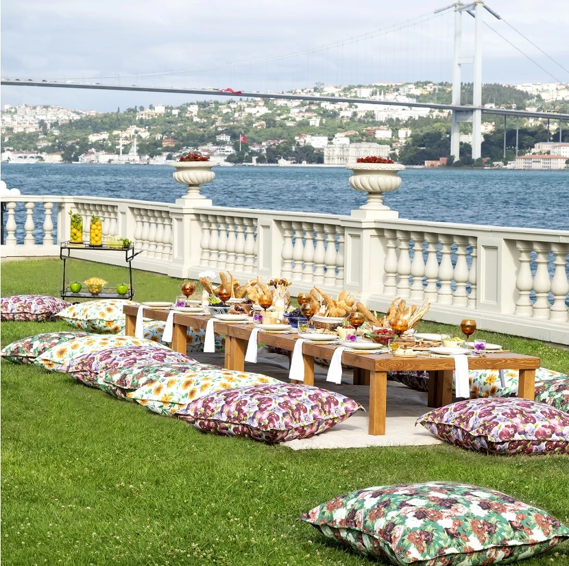 Boğaz'ın kıyısında, renkli bir konseptle sunulan, Çırağan Sarayı'nın tarihi atmosferiyle bütünleşen lüks piknik deneyimi, saray bahçelerinde dinlenip sevdikleriyle birlikte Boğaz’ın eşsiz manzarasının ve benzersiz lezzetlerin tadını çıkarmak isteyenleri bekliyor.