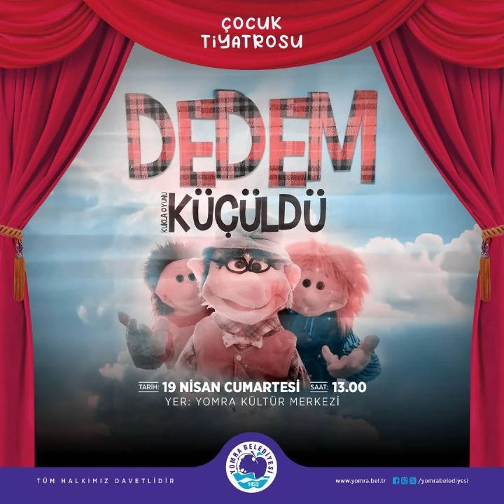 ÇOCUK TİYATROSU 19 Nisan 2025 Cumartesi Saat 13:00 Yomra Kültür Merkezi 4-10 Yaş Oyunumuz ücretsizdir. Trabzon,Yomra Belediyesibelediye365.com