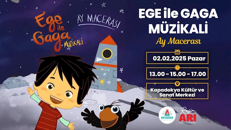02 Şubat 2025 Pazar günü Kapadokya Kültür ve Sanat Merkezi’nde çocuklarla buluşacak olan Ege ile Gaga’nın ay maceralarını anlatan müzikal çocuk tiyatrosu aynı gün 13:00-15:00 ve 17:00 saatlerinde miniklerle buluşacak.