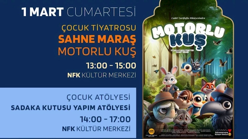Büyükşehir Belediyesi, Ramazan etkinlikleri çerçevesinde 1 Mart Cumartesi günü Sadaka Kutusu Yapım Atölyesi ve Motorlu Kuş adlı tiyatro gösterisini NFK Kültür Merkezi’nde çocuklarla buluşturacak.