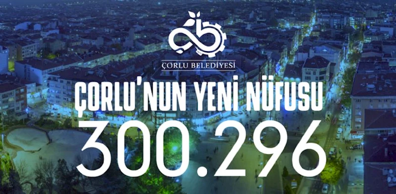 2024 yılı Adrese Dayalı Nüfus Kayıt Sistemi (ADNKS) verilerine göre Çorlu’muzun yeni nüfusu 300.296 kişi oldu.