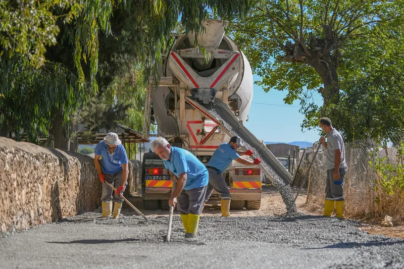 Hoyran ve Kızılovacık Mevkii’nde beton yol ve kilitli parke çalışmaları yapılıyor.