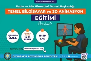 Diyarbakır Büyükşehir Belediyesi, kadınlara yönelik temel bilgisayar ve 3D animasyon eğitimleri için başvuruları almaya başladı.