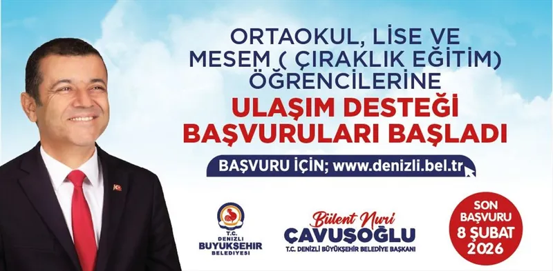 Denizli Büyükşehir Belediyesi, sosyal belediyecilik projeleri kapsamında gençlerin eğitim hayatına kolaylık getiren ulaşım desteğinin kapsamını genişletti. İhtiyaç sahibi ailelerin lise ve Mesleki Eğitim Merkezi (MESEM) öğrencilerine yönelik başlatılan destek, artık ortaokul öğrencilerini ve koruma altındaki çocukları da kapsayacak. Proje, Büyükşehir Belediyesi Sosyal Hizmetler Dairesi tarafından yürütülüyor. Başvurular, belediyenin resmi internet sitesindeki "Başvurular" sekmesi ve ilgili çevrim içi portal üzerinden yapılabilecek. Müracaatlar 8 Şubat 2026 Pazar günü sona erecek.
