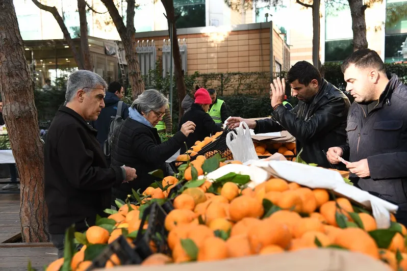 Kadıköy Belediyesi, 6 Şubat Depremi’nin yaralarını sarmaya çalışan Hatay halkıyla dayanışmaya devam ediyor. Hatay’da üretim yapan çiftçilerin ve kadın kooperatiflerinin ürünlerini Kadıköy’e getiren belediye, kurduğu dayanışma pazarlarıyla depremzede üreticilere destek sağlıyor. Pazardan elde edilen tüm gelir, Hatay’daki depremzede çiftçilere ve kadın kooperatiflerine gönderiliyor. Bugün de Kadıköy Kozyatağı Mahallesi’nde bulunan Prof. Dr. Kriton Curi Parkı’nda kurulan pazarda yüzlerce kilo portakal, mandalina, limon, karnabahar, biber ile reçel, bal, zeytin, nar ekşisi, turşu, salça gibi el yapımı yöresel ürünler tezgâhlardaki yerini aldı. Hem depremzede üreticilere destek olmak hem de taze ve doğal ürünler satın almak isteyen vatandaşlar, Dayanışma Pazarı’na yoğun ilgi gösterdi.