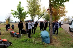 Diyarbakır Büyükşehir Belediyesi, Dicle Üniversitesi öğrencilerine uygulamalı ağaç ve çalı budama ile çim biçme eğitimi verdi.