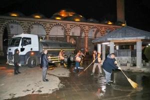 Diyarbakır Büyükşehir Belediyesi, Ramazan Bayramı öncesi yurttaşların hijyenik koşullarda ibadet etmesi için ibadethanelerde temizlik çalışması başlattı.
