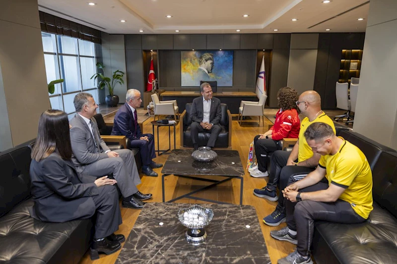Kır Çiçekleri projesinden yetişen ve 9 Nisan’da Sırbistan’da düzenlenen Liselerarası Dünya Şampiyonası’nda gülle atma branşında 2. olan Nidanur Turhan, Mersin Büyükşehir Belediyesi Gençlik ve Spor Hizmetleri Dairesi Başkanı Emrullah Taşkın, Gençlik ve Spor Hizmetleri Dairesi Başkanlığı Gençlik ve Spor Hizmetleri Şube Müdürü Bünyamin Gökayaz, Kır Çiçekleri Antrenörleri Ali Kilisli ile Nezir Ergin ve Kır Çiçekleri Projesi Sorumlu Yöneticisi Ayper Çiğdem Toraman Mersin Büyükşehir Belediye Başkanı Vahap Seçer’i ziyaret etti.