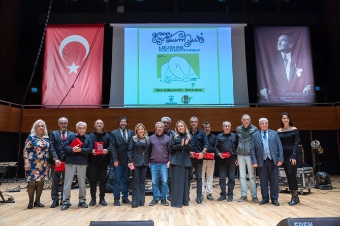 Konak Belediyesi ve İzmir Gazeteciler Cemiyeti (İGC) tarafından düzenlenen Eflatun Nuri Ulusal Karikatür Yarışması Ödül Töreni, Ahmed Adnan Saygun Sanat Merkezi’nde (AASSM) gerçekleştirildi. Bu yıl “Susmayacağız/Şiddete Hayır” temasıyla 8’incisi düzenlenen ve Konak Belediye Başkanı Nilüfer Çınarlı Mutlu’nun ev sahipliği yaptığı yarışmanın ödül törenine; İzmir Büyükşehir Belediye Başkanı Cemil Tugay, CHP İzmir Milletvekili Ümit Özlale, CHP İzmir İl Başkanı Şenol Arslanoğlu, CHP Konak İlçe Başkanı Ozan Ali İlgazi, Karabağlar Belediye Başkanı Helil Kınay, Geçmiş Dönem CHP Genel Başkan Yardımcısı ve İzmir Milletvekili Alaattin Yüksel, Geçmiş Dönem CHP İzmir Milletvekili Atila Sertel, İzmir Gazeteciler Cemiyeti Başkanı Dilek Gappi ve Yönetim Kurulu Üyeleri, Önceki Dönem İGC Başkanı Misket Dikmen, Konak Belediye Meclis Üyeleri, İzmir Baro Başkanı Sefa Yılmaz, Eflatun Nuri Ulusal Karikatür Yarışması Genel Koordinatörü Karikatürist Sadık Pala, Eflatun Nuri’nin kızı Sema Çağlar, Mustafa Bora’nın kızı Maya Bora, siyasi partilerin temsilcileri, oda, iş dünyası ile sivil toplum örgütlerinin temsilcileri, sanatçılar, gazeteciler, muhtarlar ve çok sayıda davetli katıldı. Funk Story, Positive Live Project & İbis Maria konseriyle taçlanan gecede, yarışmada dereceye girenlere ödülleri alkışlar eşliğinde verildi.