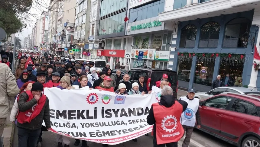 SAMSUN-DİSK/Devrimci Emekliler Sendikası Samsun ve Atakum Şubeleri ile Tüm Emeklilerin Sendikası Samsun Şubesi’nin katılımıyla emekliler, Samsun’da Şehir Kulübü önünde bir araya gelerek yaşadıkları ekonomik ve sosyal sorunlara dikkat çekti. Çok sayıda emeklinin hazır bulunduğu basın açıklamasında, emeklilerin içinde bulunduğu zor koşullar yüksek sesle dile getirildi.