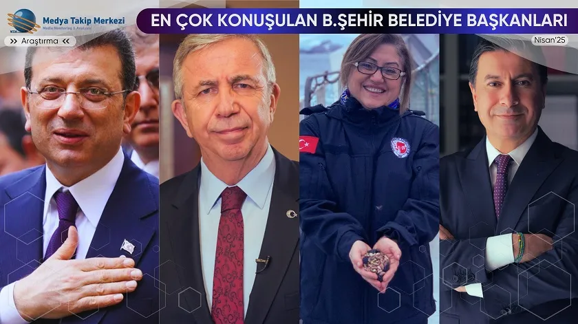 MTM Medya Takip Merkezi, 10 bini aşkın kaynak üzerinden Nisan 2025’te En Çok Konuşulan Büyükşehir Belediye Başkanları’nı araştırdı. Ekrem İmamoğlu’nun birinci olduğu listede; Mansur Yavaş ikinci Fatma Şahin ise üçüncü sıraya yerleşti.