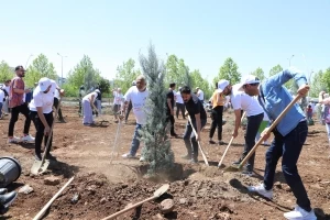 Park ve Bahçeler Dairesi Başkanlığının, fidan, yer temini ve teknik destek sunduğu etkinlik, Kayapınar ilçesi Fırat Bulvarı üzerindeki Kent 2 Ormanlık Alanı’nda yapıldı.