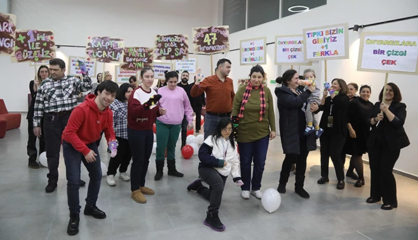Kursiyerlerin ailelerinin de katıldığı etkinlik eğlenceli anlara sahne oldu. Uzman eğitmenler eşliğinde aileleriyle birlikte müzik dinleyip dans eden kursiyerler; ellerindeki "Önyargılara bir çizgi çek", "Tıpkı sizin gibiyiz +1 farkla", "Gerçek sevgi kromozom sormaz", "Sevginin formülü 47 kromozom", "Küçük 1 fark büyük 1 sevgi", "Down sendromu bir hastalık değildir" yazılı dövizler ve özel olarak hazırladıkları eldivenlerle toplumsal mesaj veren kursiyerler, her bireyin eşit, sevgi dolu ve erişilebilir bir dünyada yaşaması için çalışmaya devam edeceklerini vurguladı.